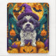 Spooky Shih Tzu Dog Halloween Witch And Pumpkin Mouse Mat