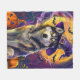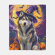 Spooky Siberian Husky Dog Halloween Witch Pumpkin Fleece Blanket