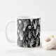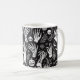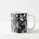 This Halloween-themed mug features a chilling design of skeleton hands reaching out from a dark background, adorned with skulls, bones, and other spooky symbols. Perfect for adding a touch of horror to your morning routine.