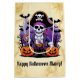 Send a frightfully fun Halloween greeting with this bold and playful pirate-themed postcard! Featuring a grinning skeleton pirate in full regalia — complete with pumpkins, bats, and haunted trees — this design captures the spirit of the season with a cheeky nautical twist. Set against an aged treasure map background with accents of purple and black, it’s perfect for pirate-loving friends, Halloween party hosts, or anyone who enjoys a little humour with their haunt. This Halloween card is customisable — add your own message, name, or spooky wishes. Whether you're sending greetings across the seas or delivering it with a bottle of rum, this card is sure to make ‘em smile (or cackle like a cursed buccaneer). Edit from the product page or to change font style of colour, use the design tool.