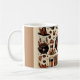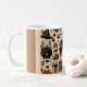 A cosy and festive Halloween mug featuring a whimsical pattern of witches' hats, cauldrons, coffee beans, and pumpkin spice latte illustrations. Perfect for enjoying your favourite fall beverages during the spooky season.