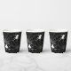 Black Halloween party cups patterned with spooky spiders and cobwebs