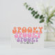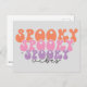 This design showcases the phrase "Spooky Spooky Spooky Vibes" arranged in a cascading, stacked format. The word "Spooky" is repeated three times, each in a different colour—starting with a vibrant orange, transitioning to a soft pink, and ending with a pastel purple. The letters are thick and rounded, giving a playful and bubbly appearance that contrasts with the spooky theme. The word "vibes" is written below in a delicate, black cursive font, adding a stylish touch to the overall design. Small star accents surround the text, enhancing the whimsical and festive mood. This design is perfect for a fun and light-hearted take on Halloween.
