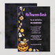 Get ready for a frightfully fun time with this vibrant Halloween bash invitation! Featuring playful skulls, candy corn, and other festive treats on a dark background, it's perfect for a lively Halloween party.