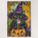 Spooky Tuxedo Cat Halloween Witch And Pumpkin Jigsaw Puzzle