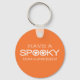 Simple and modern Spooky Typography Halloween Keychain in orange and white featuring a cool text design with two whimsical ghosts peeking through the word "Spooky." This fun Halloween keychain lets you easily keep track of your keys and show the world a bit of Halloween flair! Easy to customise, add your own spooky text. Click on the "Customise It" button to move the design element, change the fonts or text colours, and add/remove additional text.