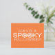 Simple and modern Spooky Typography Halloween Greeting Postcard in orange and white featuring a cool text design with two whimsical ghosts peeking through the word "Spooky." This stylish postcard is a great way to wish friends and family a Happy Halloween. Easy to customise, add your own spooky text! Click on the "Customise It" button to move the design element, change the fonts or text colours, and add/remove additional text.