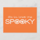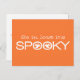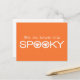 Fun and quirky Spooky Typography Halloween Save the Date Postcard Announcement in orange and white featuring a fun text design of the word "spooky" with a pair of charming ghosts haunting the two "O" letters. This chic design is perfect for announcing your wedding date around or on Halloween. Easy to customise, simply add the details of you wedding in the text fields provided. For more customisation options, click on the "Customise It" button to change fonts, text colours or move the design element.