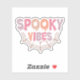This fun and festive Halloween design features the phrase "Spooky Vibes" in a playful, dripping font that gives the text a gooey, eerie effect. The words are filled with soft, pastel shades of pink, orange, purple, and peach, adding a lighthearted and whimsical twist to the spooky theme. Beneath the text, a simple spider web illustration in a soft brown colour adds a classic Halloween touch, tying the design together. The combination of the pastel colours and the spooky elements creates a unique contrast that’s both cute and a little bit creepy, making it perfect for Halloween