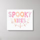 This fun and festive Halloween design features the phrase "Spooky Vibes" in a playful, dripping font that gives the text a gooey, eerie effect. The words are filled with soft, pastel shades of pink, orange, purple, and peach, adding a lighthearted and whimsical twist to the spooky theme. Beneath the text, a simple spider web illustration in a soft brown colour adds a classic Halloween touch, tying the design together. The combination of the pastel colours and the spooky elements creates a unique contrast that’s both cute and a little bit creepy, making it perfect for Halloween