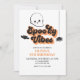 Spooky Vibes Halloween birthday invitation with ghost, bat and spider.