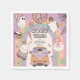 Retro Spooky Vibes Halloween Party Napkins- Let's get Groovy! Design features a colourful background with a boho rainbow. Cool retro illustrations decorate the simple template with adorable hippie ghosts, skull flowers, spooky disco ball and spooktacular candy.