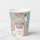 Retro Spooky Vibes Halloween Party Paper Cups- Let's get Groovy! Design features a colourful background with a boho rainbow. Cool retro illustrations decorate the simple template with adorable hippie ghosts, skull flowers, spooky disco ball and spooktacular candy.