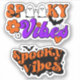 This delightful Halloween sticker sheet features two separate designs, each with its own unique charm. The first sticker showcases the phrase “Spooky Vibes” in vibrant orange, white, purple, and black colours. With a delightful retro feel, two white ghosts cleverly replace the “o” letters in the word “spooky.” Surrounding the text are playful black bats, a heart, and retro-inspired flowers, adding to the festive and nostalgic vibe. The second sticker, in a bold orange and black colour scheme, features a thick black border that follows the contour of the design elements. This sticker highlights black bats and stars, creating a striking and festive look with a retro vibe. Ideal for Halloween enthusiasts, these stickers are perfect for personalising items like laptops, notebooks, or phone cases. Their cut-to-shape design allows for versatile application on various surfaces, making them a fun and creative way to celebrate the season.