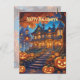 This Card features a spooky mansion in the forest with illuminated windows surrounded by lots of pumpkins. Send spooky Halloween Greetings to your loved ones! Custom text.