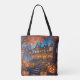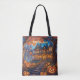 This bag features a spooky mansion in the forest with illuminated windows surrounded by lots of pumpkins. Perfect for Halloween! Custom text.