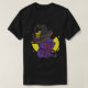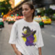 I give wanted to give this a 4 instead of a 5 because these Basic DARK T0shirts run unexpectedly SLIM or Narrow. Which is great if you do not have a potbelly, but I have a paunch. It isn't the shirt's fault that I've got a beer belly. The design and shirt itself is a quality cotton shirt. The color is more of a deep purple, but still a very pretty color. The Basic DARK T-shirts run a bit SLIMMER than the Basic Ts. The neck is a fraction narrower (or seems to be narrower) also. I'm a paunchy middle-aged woman and my neck is 12 inches (31cm) thick and the neckline fell about the same as in the photo of the man, and I had the desire to tug it a bit. So if you're a thick necked man or like loose shirts, be aware these are slimmer shirts. Once I get rid of my lockdown paunch it'll look great. The shirt washed well in cold water with no apparent bleeding. We don't have a dryer, so it hung dry. Did not shrink. Love the colors and the design. The design looks smaller on my shirt than it does on the model on-line. But still, it looks good on the shirt. The printing looks as it does on the model, just the size seems fractionally smaller. Washed garment in cold water, hung dry and design appeared unaffected.