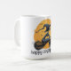 This is a cute & customisable Halloween mug that features a spooky witch who is flying on top of her broomstick over the full moon. You can customise the default text "happy Halloween".