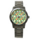 This women's watch has a novelty design of different sports balls, including basketballs, baseball, billiard balls, soccer balls, footballs, and golf balls.