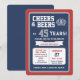 Sports Bar Birthday Cheers and Beers to 45 Years Invitation