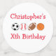 Kids sports birthday party gifts with soccer ball, baseball, football and basketball. Photo template via Pixabay licensed under CC0 and must be replaced with your own photo