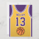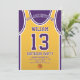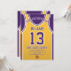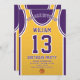 Celebrate your special day with this Basketball Jersey Birthday Invitation, designed for true basketball fans! Featuring a bold jersey design inspired by the iconic purple and gold colours, this invite is perfect for kids, teens, and adults who love the game. Personalise it easily with your name, age, party details, and even team number in just a few clicks. Available in multiple sizes, printed on premium quality paper with a wide range of finishes to match your style. Choose from different paper types, fast printing, and quick shipping so your invitations arrive on time. Whether it’s for a sports-themed party or a Lakers fan celebration, this invite is the perfect way to get your guests excited.