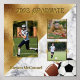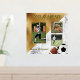 Sports themed foil graduation print, done in a half gold and half marble background, with three gold foil frames for your grad's photos and graphics of a soccer ball and football, in the bottom right corner. Personalise the text and photos for a great graduation memory.