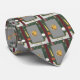 Sports Equipment Tie, by Kristie Hubler, with all sorts of sports equipment, including baseball, bat, football, basketball, hockey puck, skateboard, ramp, hockey stick, golf bag, golf ball, golf club, baseball mitt, all around a photo frame