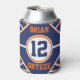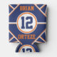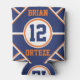 Cute orange and blue personalised can cooler. Change the name and number yourself when you order