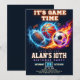 Set against a deep black background, the glowing "It's Game Time" headline captures the intensity of the big game. This invite is the ultimate choice for a multi-sport birthday party or any young athlete who loves basketball, soccer, and football. Customize the text to include your MVP's name, age, and party details for a truly epic kickoff!