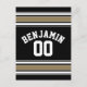 Sports Jersey Black and Gold Stripes Name Number Postcard