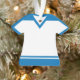 Customise this light blue sports jersey ornament, with your own choice of name and number!