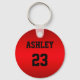 A jersey number and name in black on a red background. Both name and number can be personalised in the text box. Colour of text can be changed in the edit menu prior to checkout.