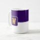 Coffee mug is shown here with a colour block style print with a sample letter, customise and change colours and letter or buy as is.