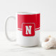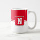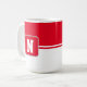 Coffee mug is shown here with a colour block style print with a sample letter, customise and change colours and letter or buy as is.