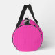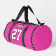 Coordinate your team with this modern sports duffel bag. It features a bright pink background with a faint dot pattern, emulating the look of net mesh polyester, commonly seen in basketball uniforms. The edges have a black and white stripe. You can add your team name, team number, and your last name. Make a set for your squad to win in style! ••• For more athletic accessories, visit my store Zazzle.com/JessicaAmberArtist ••• For custom orders, message me on Zazzle