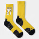 Coordinate your team with this simple pair of sports socks by JessicaAmber! These high performance crew socks feature bold varsity-style lettering and a yellow and white colour scheme. You can add your team name and team number. Make a set for your team to win in style! ••• For more athletic apparel, visit my store Zazzle.com/JessicaAmberArtist ⭐ For custom orders, contact me via Zazzle messaging.