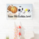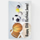 Personalised sports birthday banner. Great for a personalised boy's sports themed birthday party banner. Football, basketball, soccer ball, baseball, tennis ball, pool or billiards ball, golf ball, and ping pong ball.