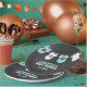 Lovely sports theme baby shower paper plates. Chalkboard background with blue and white colours. Baby clothes on clothes line with football, soccer, basketball and baseball. Personalise these with mummy-to-be name and date (date can be deleted)