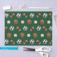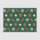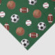 Sports lover gift or party tissue featuring soccer, football, basketball and baseball pattern on green background.