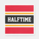 This sporty, athletic design features bold HALFTIME text inside a highlighted wide centre black stripe with white and yellow racing stripes against bright red outer stripes. The text can be personalised.