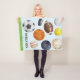 A custom fleece blanket featuring a variety of painted style sports balls. The items include a baseball, football, volleyball, tennis balls, hockey puck, soccer ball, volleyball, bowling ball, and basketball. Towards the bottom corner is a spot for yours or your gift recipients name. The individual balls are actually removable so you can add more text to the blanket if you please. Have fun creating and making it your own.