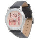Say Hello in five language with a cool reddish design. This watch is perfect for a sporty stylish look.
