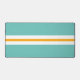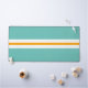 This sporty, bold design features two white centre stripes unified with a colourful bright yellow orange slender stripe against vibrant light teal adjoining stripes.