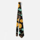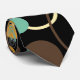 A tie with a bold colourful abstract design made up of spots and circles in attractive harmonious colours on a black background.