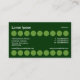 A stylish modern business/profile card template with a spot design. Thirty six aligned spots on the front with company name in the top left with type of business/quote on the right. Name and other details on the reverse in the same theme but with fewer rows of spots to accommodate the text. N.B The background colours of this card can be customised.