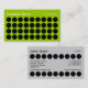 A stylish modern business/profile card template with a spot design. Thirty six aligned spots on the front with company name in the top left with type of business/quote on the right. Name and other details on the reverse in the same theme but with fewer rows of spots to accommodate the text.