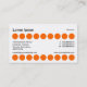 A stylish modern business/profile card template with a spot design. Thirty six aligned spots on the front with company name in the top left with type of business/quote on the right. Name and other details on the reverse in the same theme but with fewer rows of spots to accommodate the text. N.B The background colours of this card can be customised.