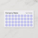 A stylish modern business/profile card template with a spot design. Thirty six aligned spots on the front with company name in the top left with type of business/quote on the right. Name and other details on the reverse in the same theme but with fewer rows of spots to accommodate the text. N.B The background colours of this card can be customised.