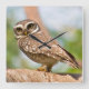 Spotted owl on morning flight. square wall clock